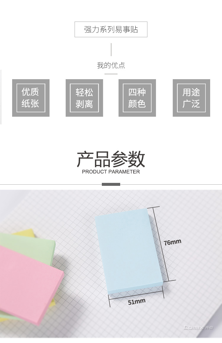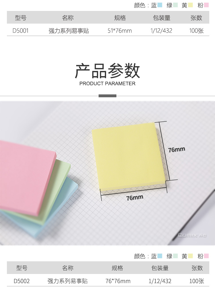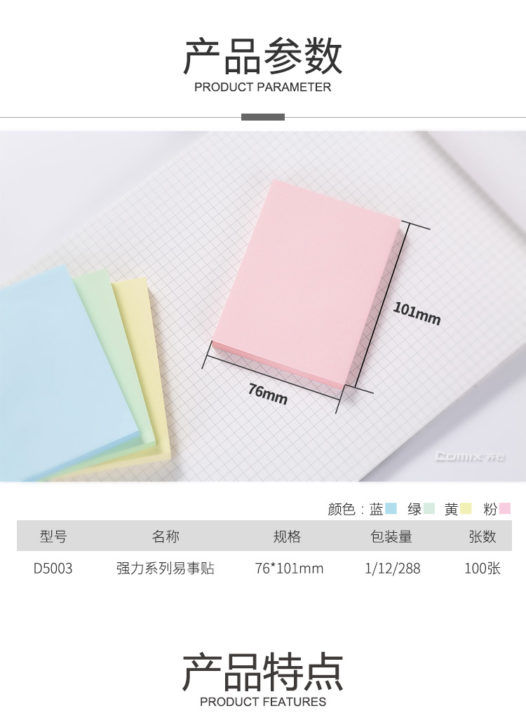 齊心D5005強力易事貼4色混裝76*76mm*4
