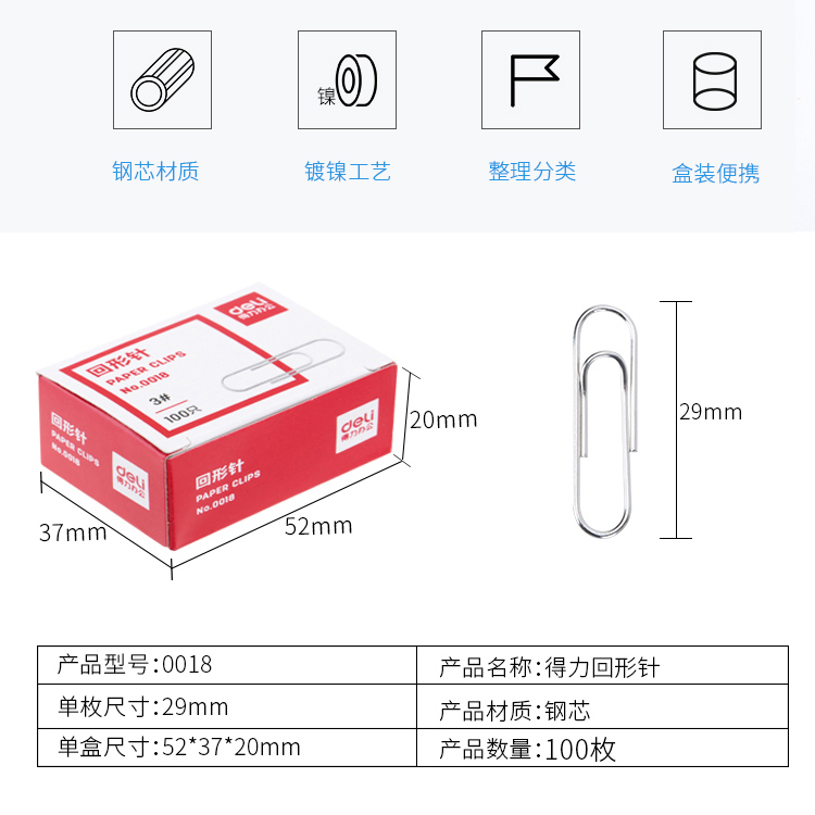 得力0018回形針29mm*10