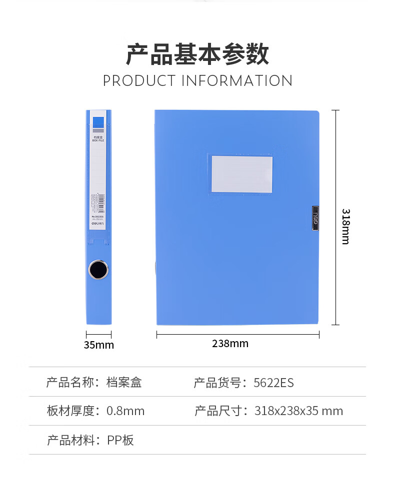 采用100%進口環保PP材料制作,A4規格容紙量為35MM,板片厚度為0.80MM,適用于大量資料文件長期保存歸檔。