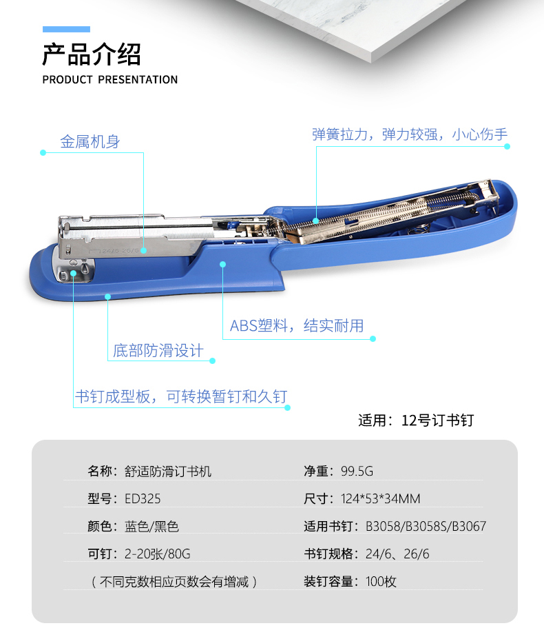 齊心B3046舒適訂書機12# 20頁*12