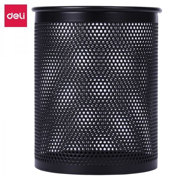 得力909圓形金屬網格筆筒黑φ80*100mm