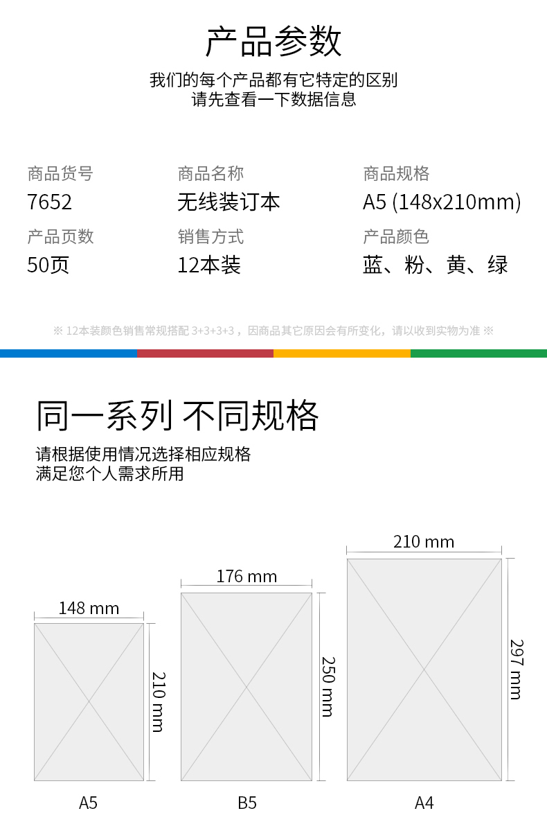 得力7658辦公無線裝訂本(混)-60張-A4*10 B
