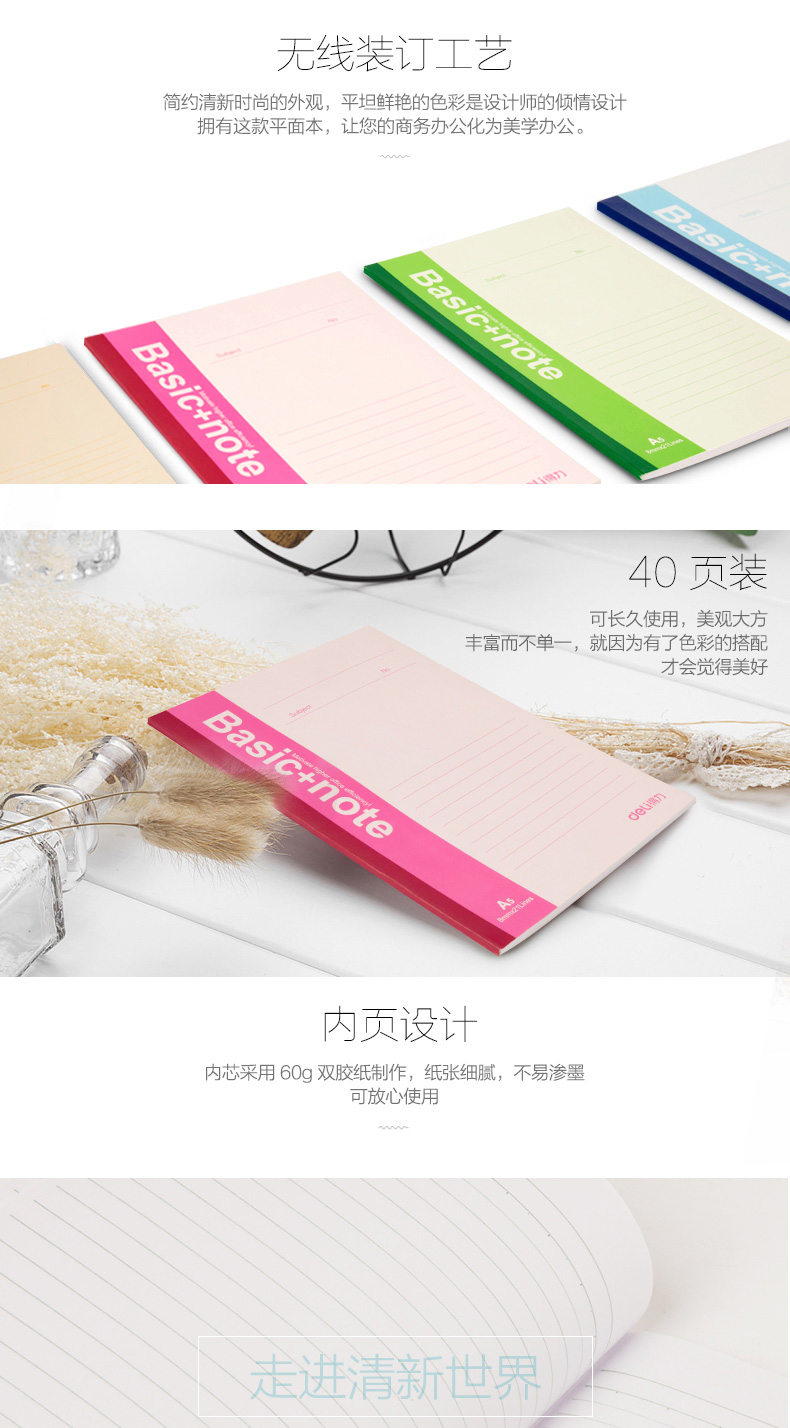 得力7658辦公無線裝訂本(混)-60張-A4*10 B