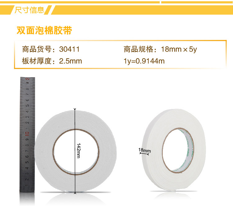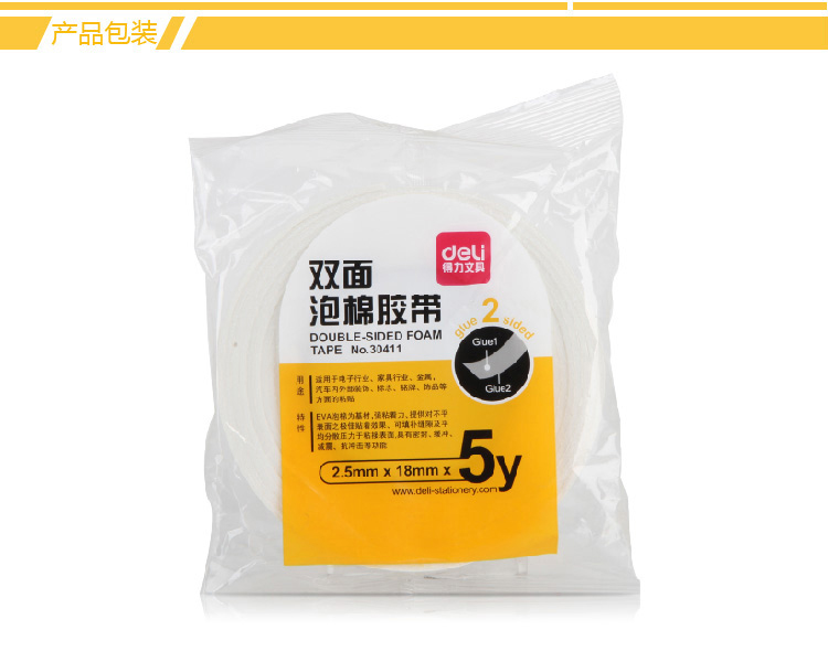 得力30411EVA泡棉雙面膠帶18mm*5y*2.5mm(白)(1卷/袋)