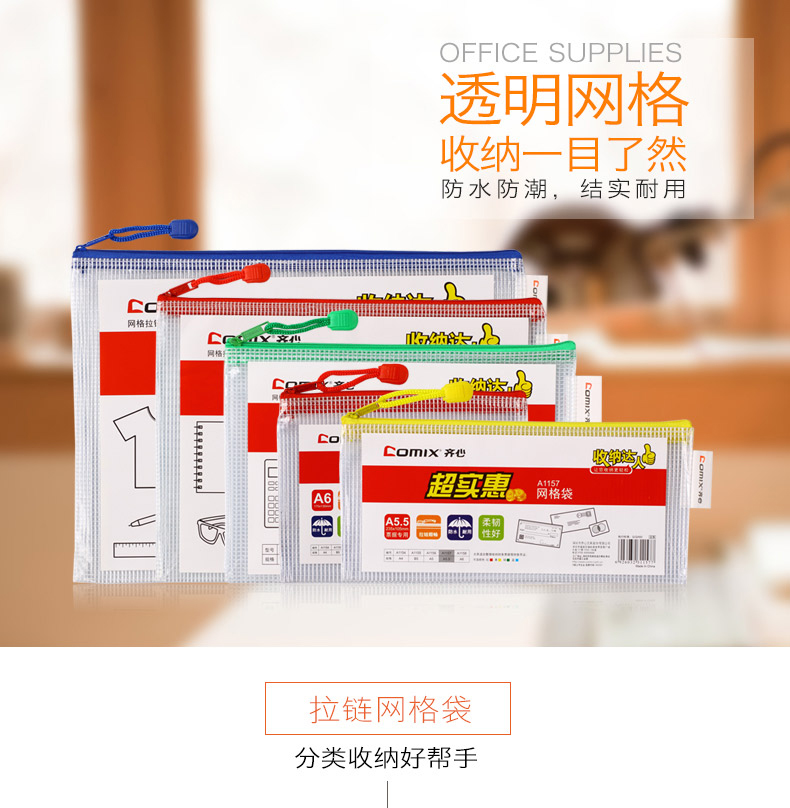 齊心A1158網格拉鏈袋A6*10 混色
