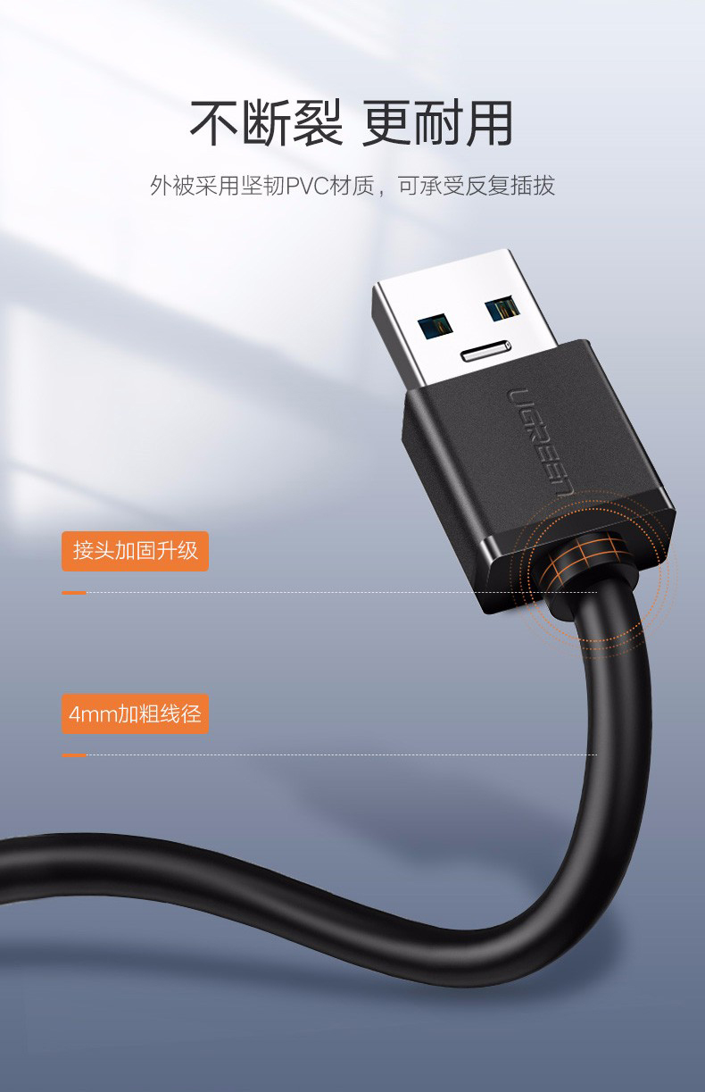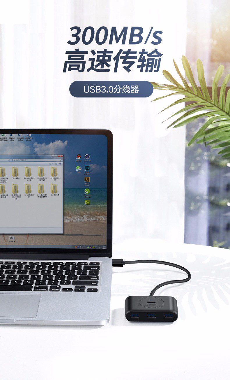 綠聯USB3.0分一拖四集線器延長線1.5米白 30221
