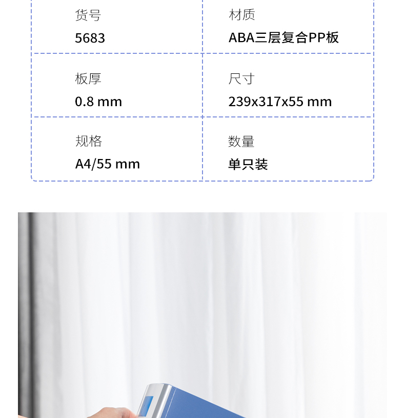得力5663-55檔案盒-背寬55MM(藍(lán))