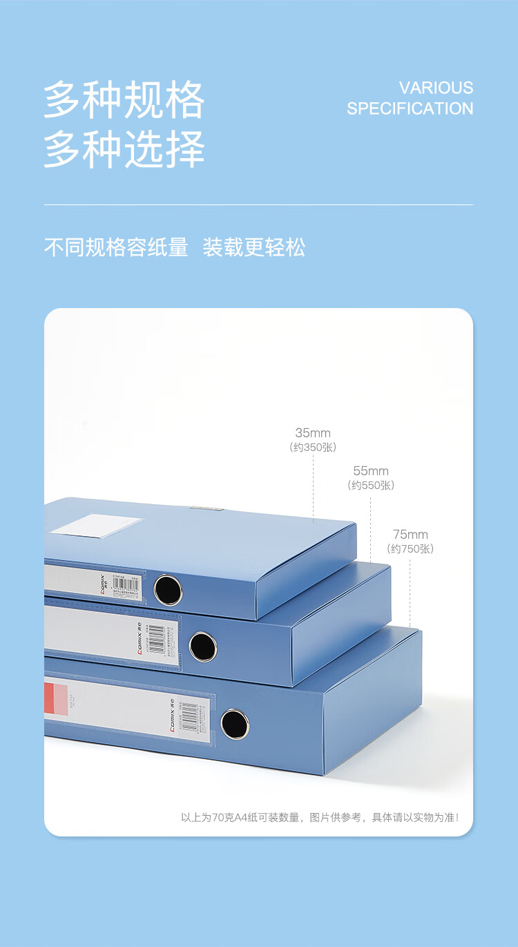 齊心A1249超省錢PP檔案盒A4 55mm藍(lán)*18