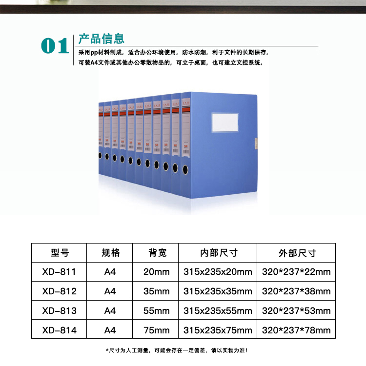 新時達XD-814 文件盒檔案盒資料盒收納盒塑料憑證盒大號 A4紙350頁 75mm
