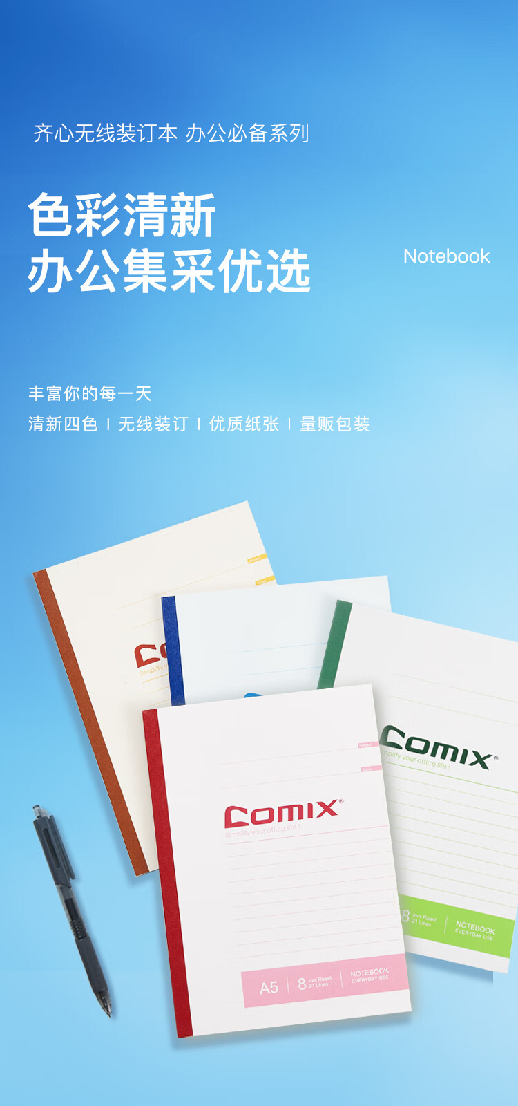 齊心C4509辦公必備無線裝訂本B5 50張*12