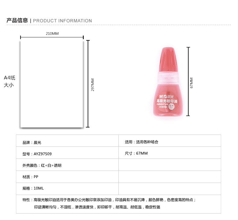 晨光高級光敏印油(紅)AYZ97509