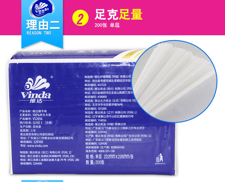 維達VS2056一層3折擦手紙200張*20