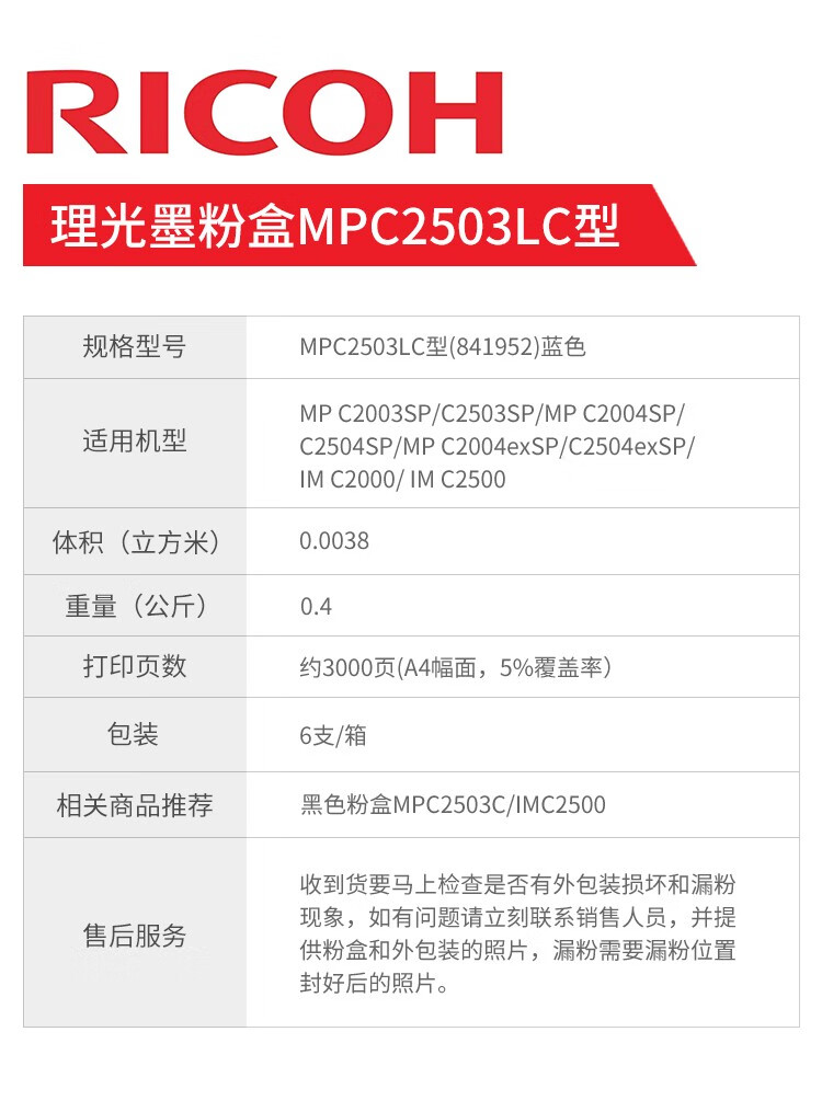 適用類型 : 理光MPC2503LC型紅粉(低容)(841951)