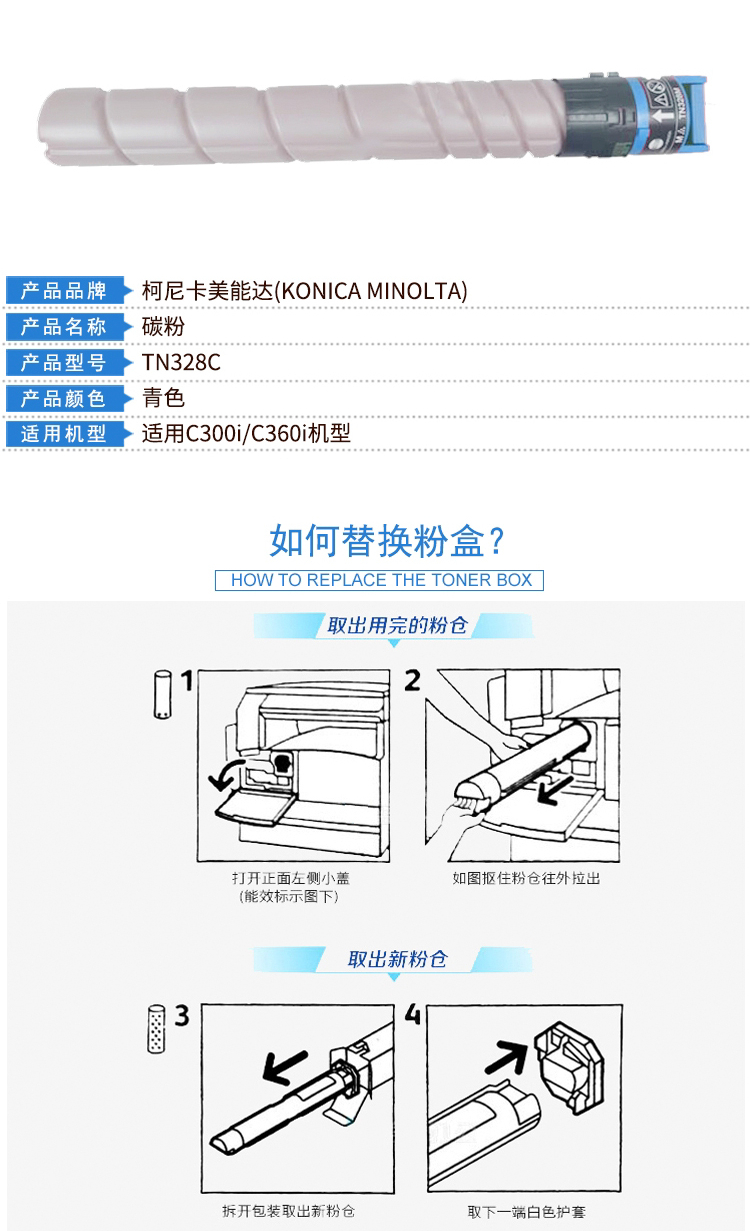 柯尼卡美能達TN328C青粉(AAV8490)