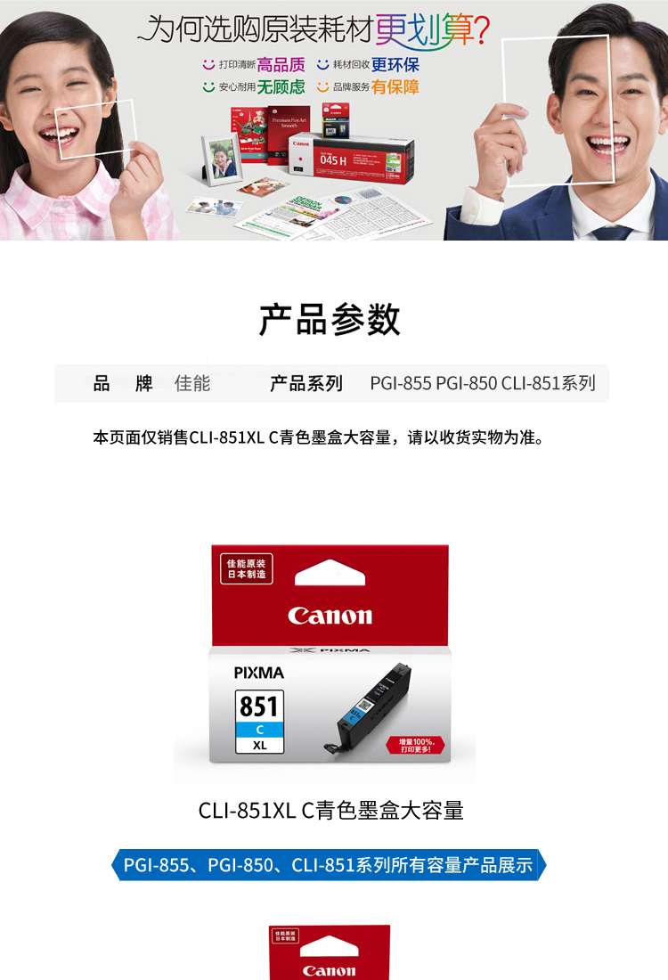佳能CLI-851C青色墨盒
