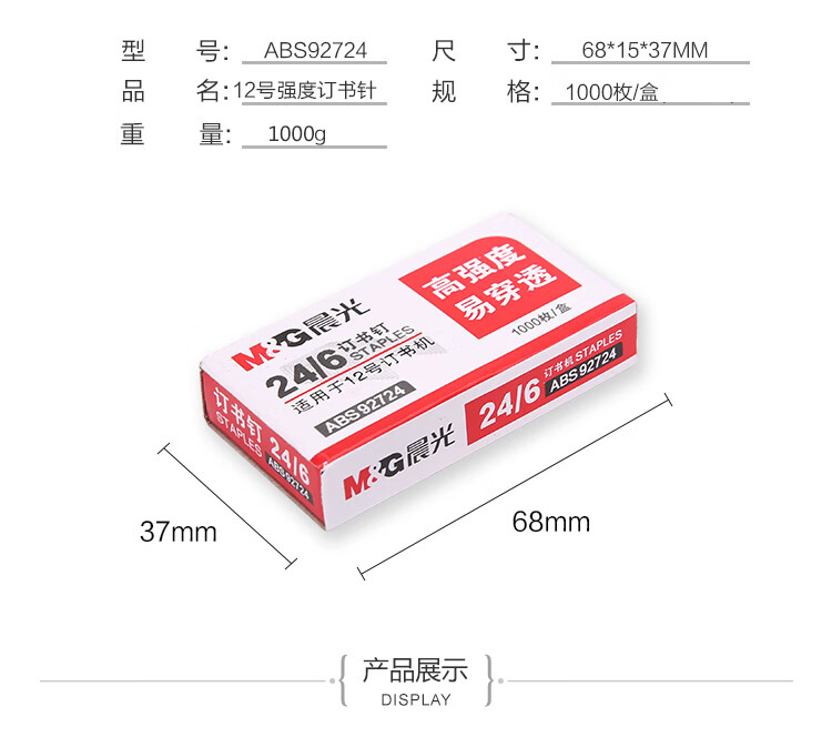 晨光訂書釘高強12號ABS92724(24/6)(1000枚/盒)