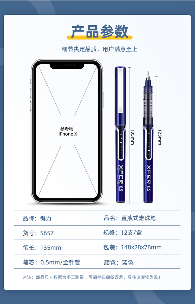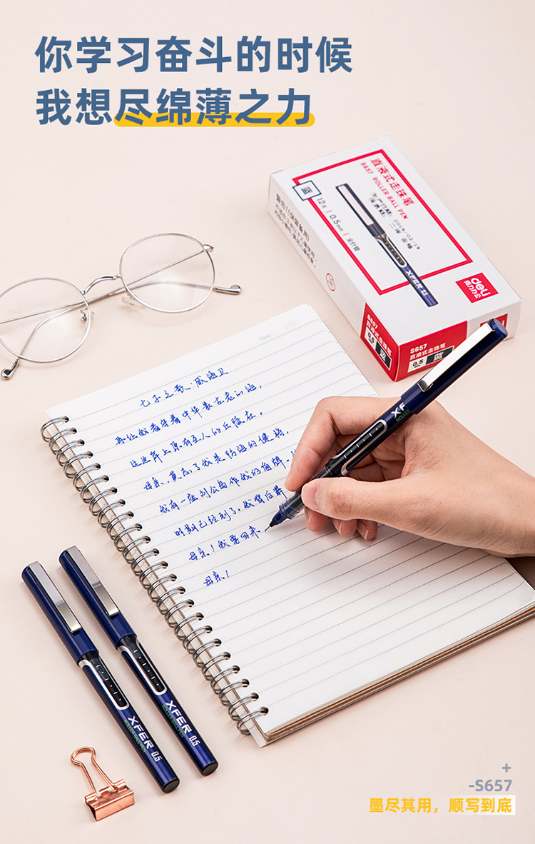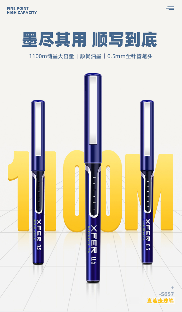 得力S657直液式中性筆藍*12
