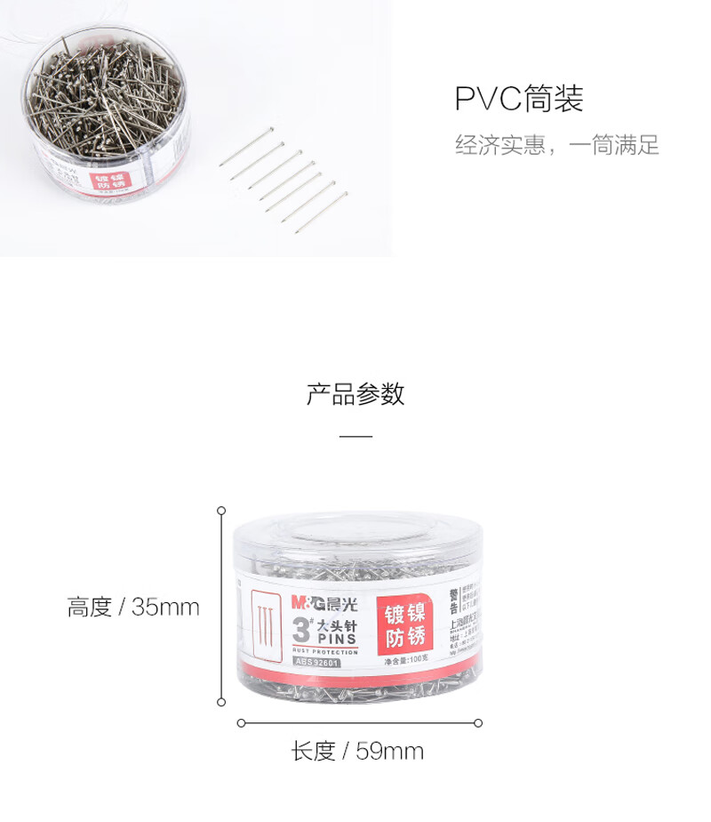 晨光3號大頭針PVC筒裝ABS92601(100枚/盒)