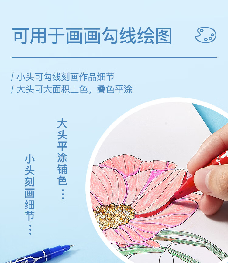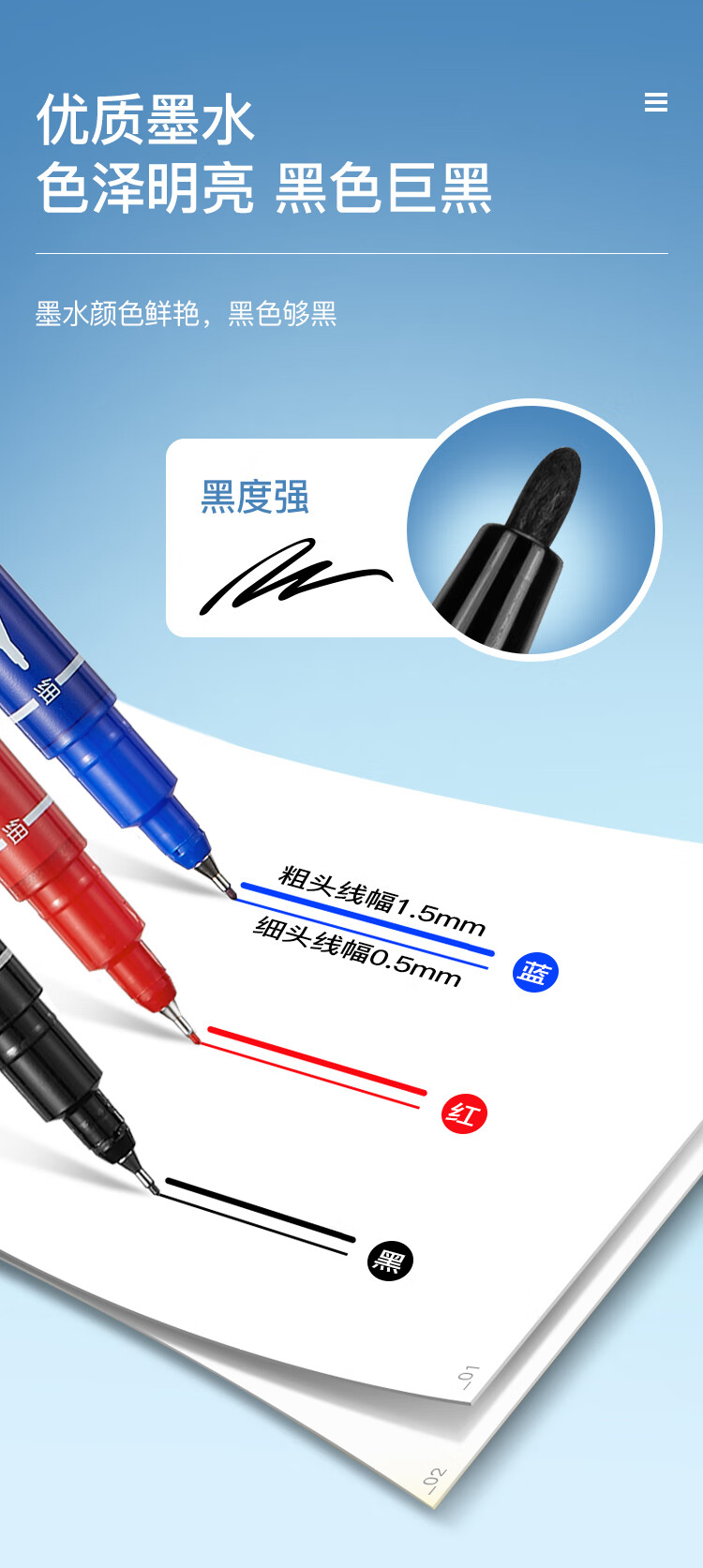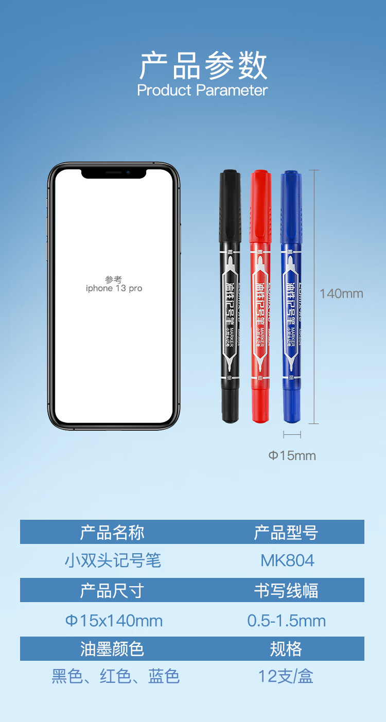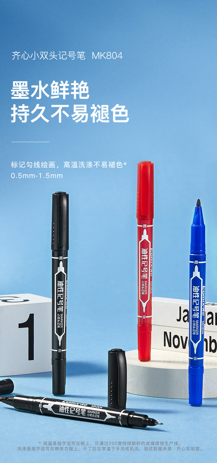 齊心MK804小雙頭記號筆0.5-2mm藍*12