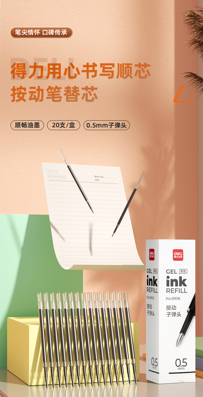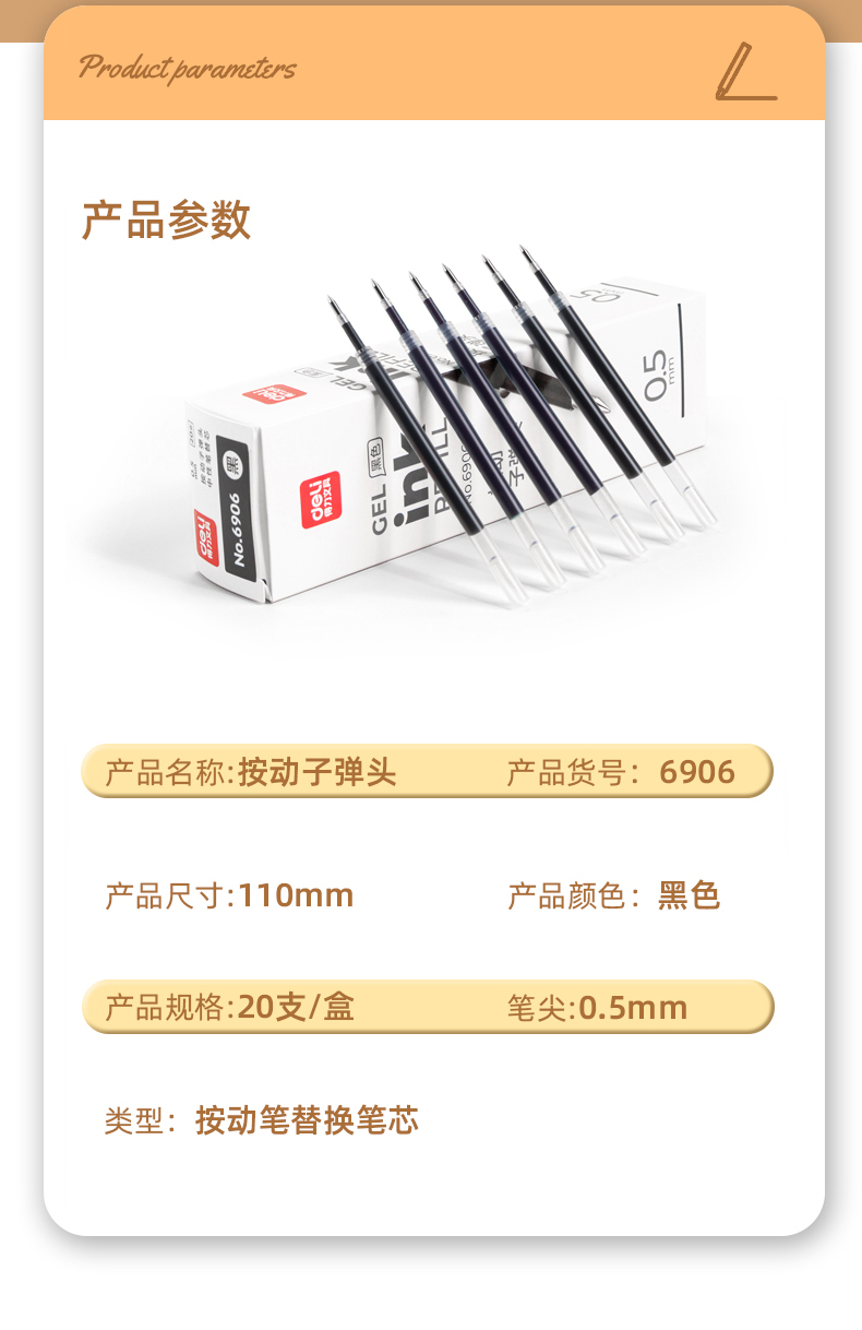 得力6906按鍵式中性筆替芯0.5mm黑色*20支
