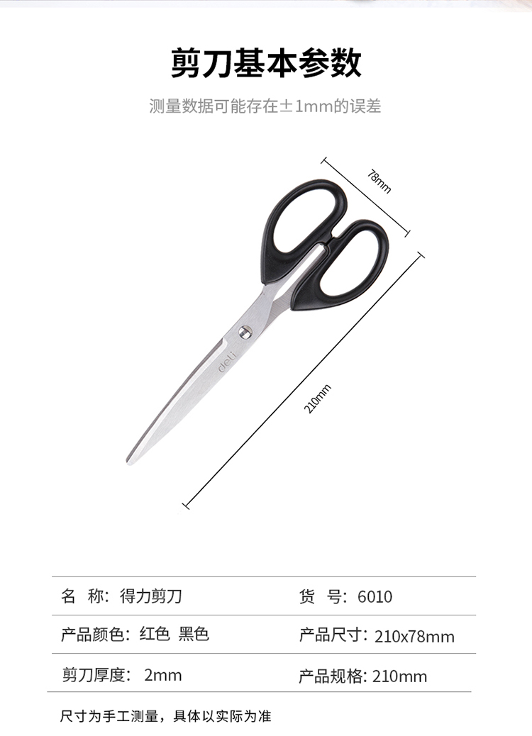 得力6010剪刀8寸(黑)