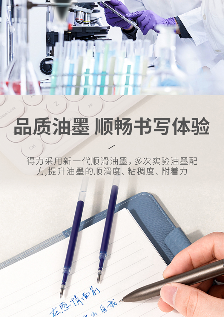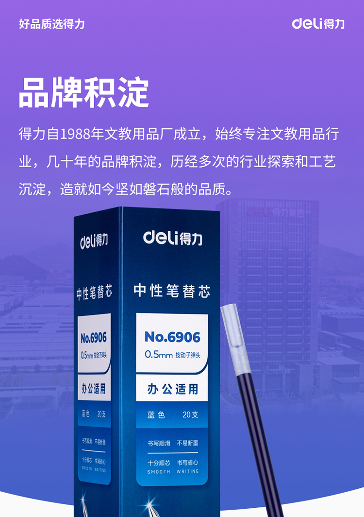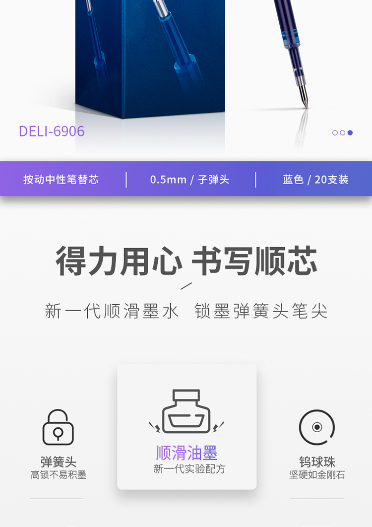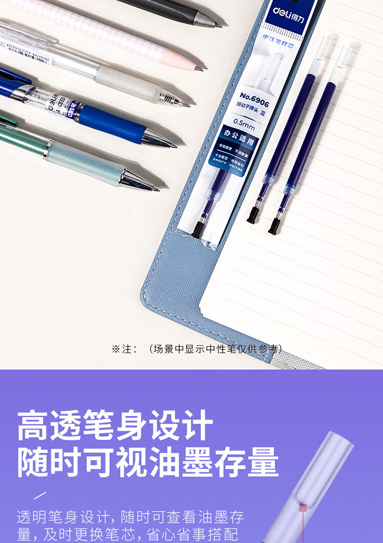 得力6906按鍵式中性筆替芯0.5mm墨藍色*20支