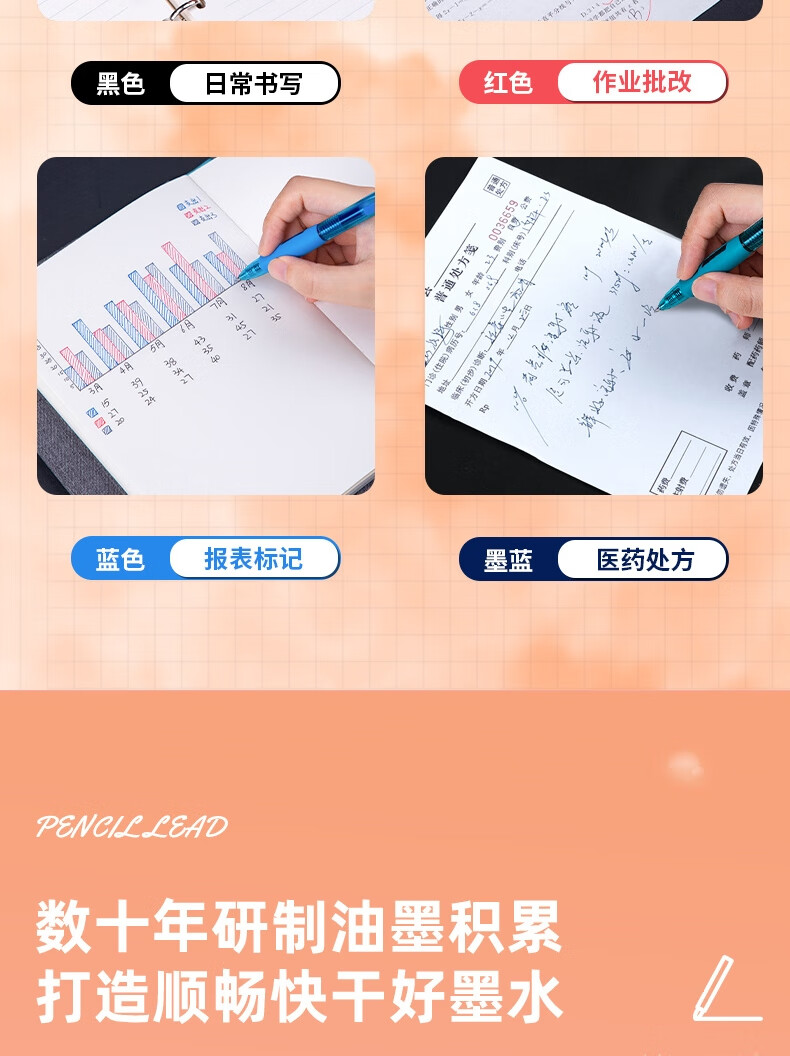 得力6906按鍵式中性筆替芯0.5mm墨藍色*20支