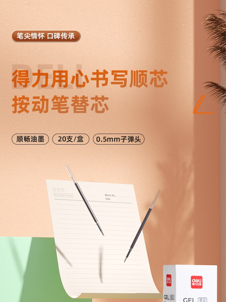 得力6916通用型中性筆替芯0.5mm*20黑色