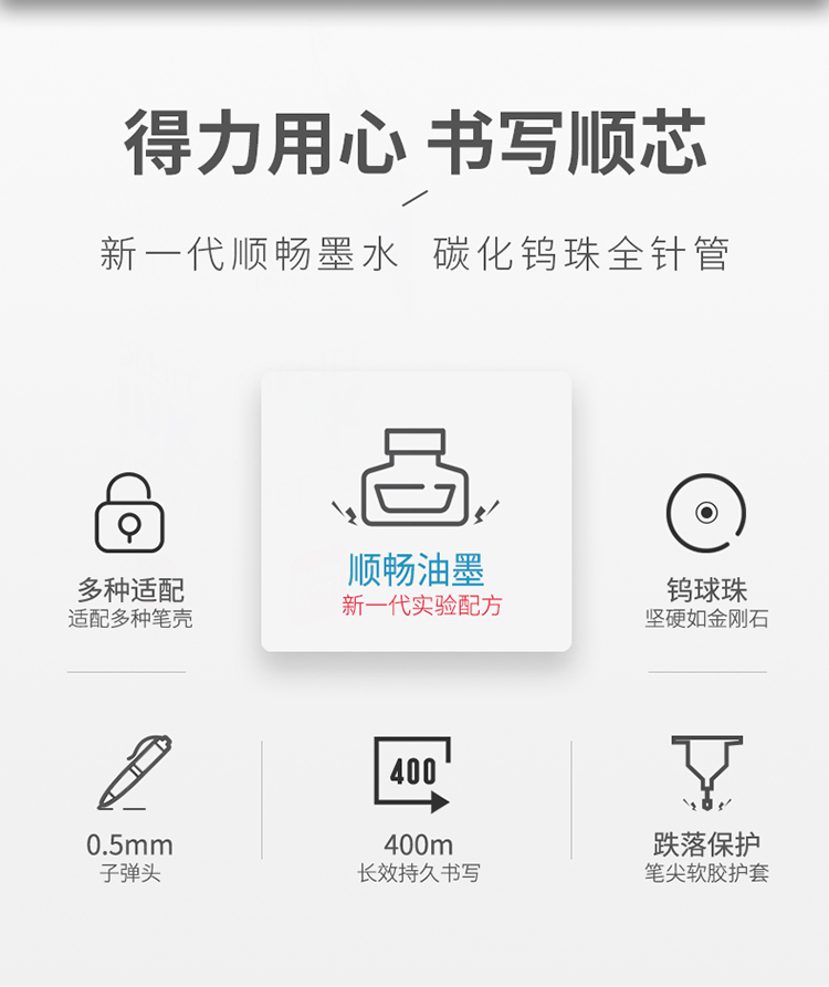 得力6916通用型中性筆替芯0.5mm*20黑色
