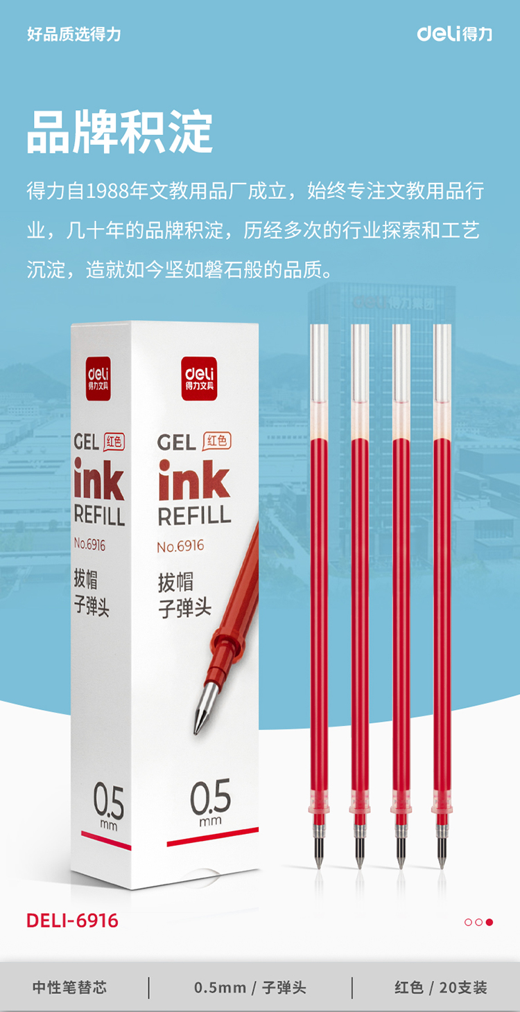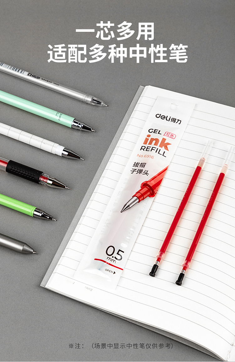 得力6916通用型中性筆替芯0.5mm*20紅色