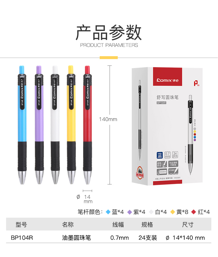 齊心BP104R舒寫圓珠筆0.7mm藍*24