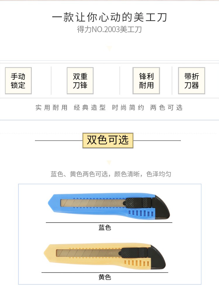 得力2031帶金屬護(hù)套塑料美工刀9mm