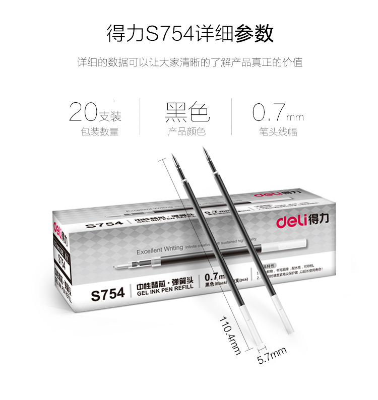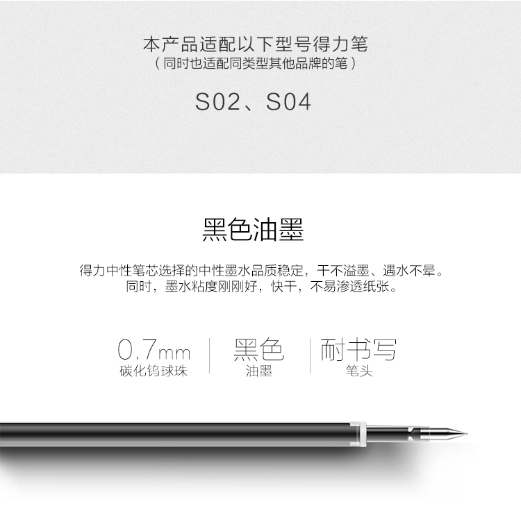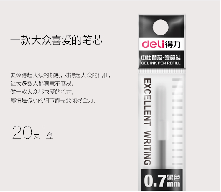 得力S754彈簧頭中性筆芯0.7mm(黑)*20
