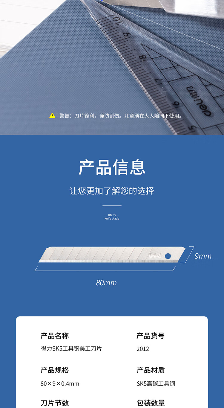 得力2012小號美工刀片(銀色)(10片/盒)