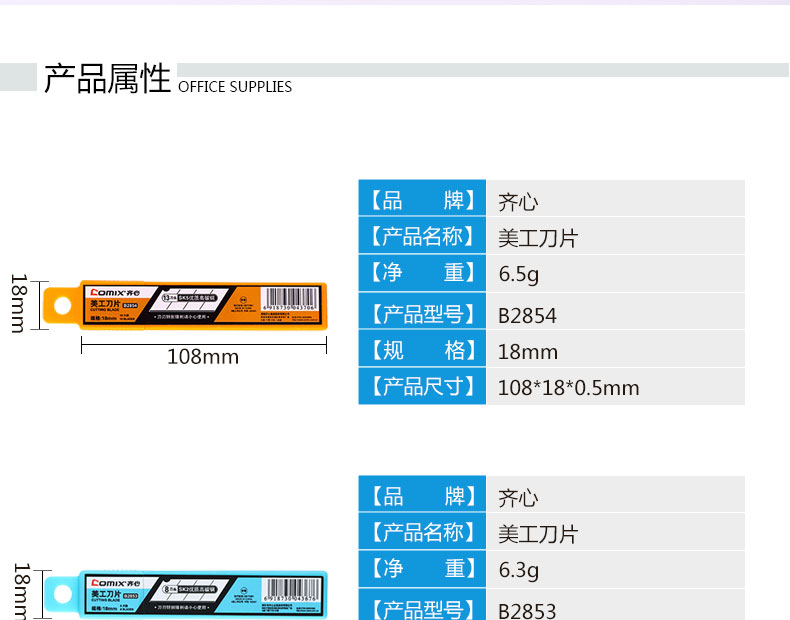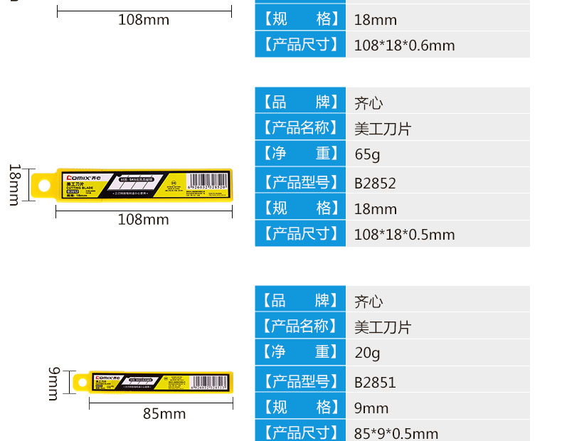 齊心B2852美工刀片18mm*10片/盒*24