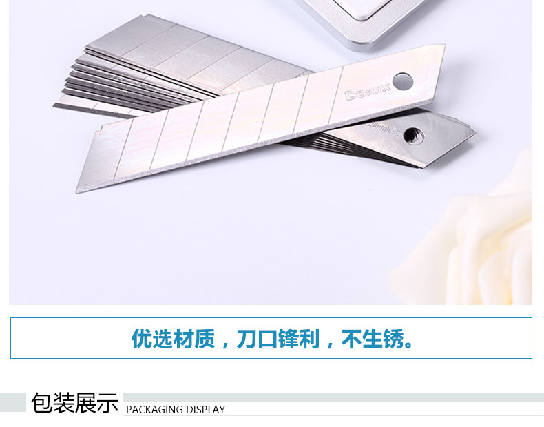 齊心B2851小號美工刀片9mm*10片/盒