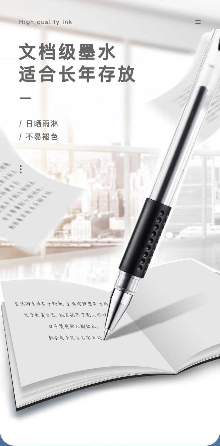 齊心K3511舒適按動中性筆0.5mm黑*12