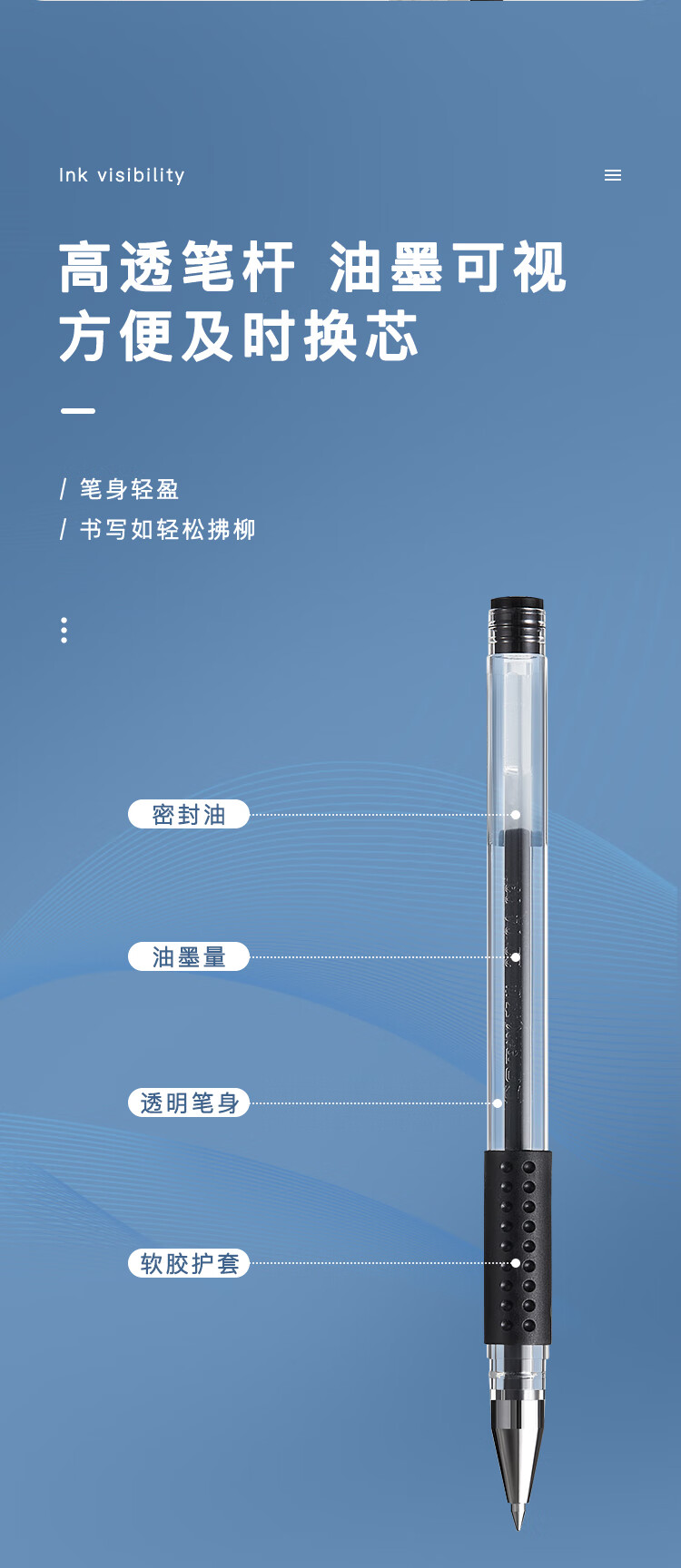 齊心K3511舒適按動中性筆0.5mm藍*12
