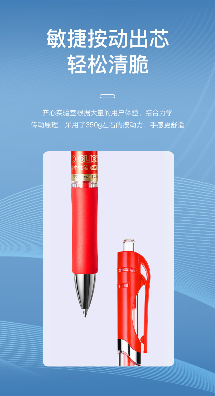 齊心K3511舒適按動中性筆0.5mm藍*12