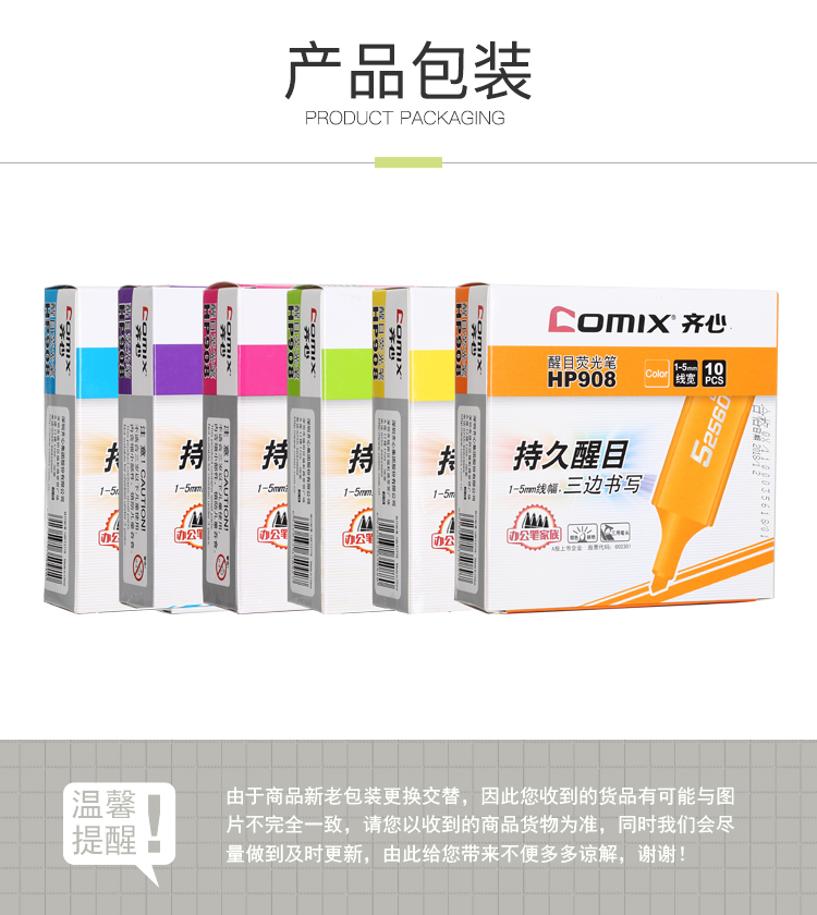 齊心HP908熒光筆黃色*10