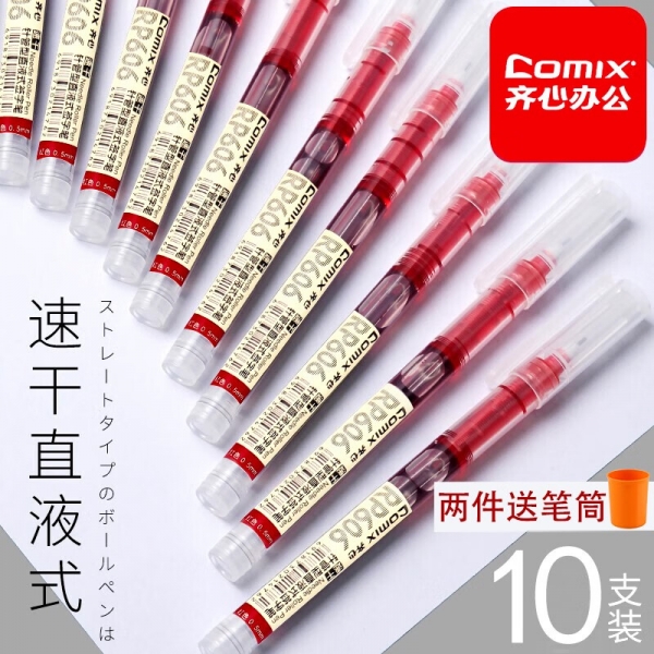 齊心RP606直液式全針管簽字筆紅0.5mm*10