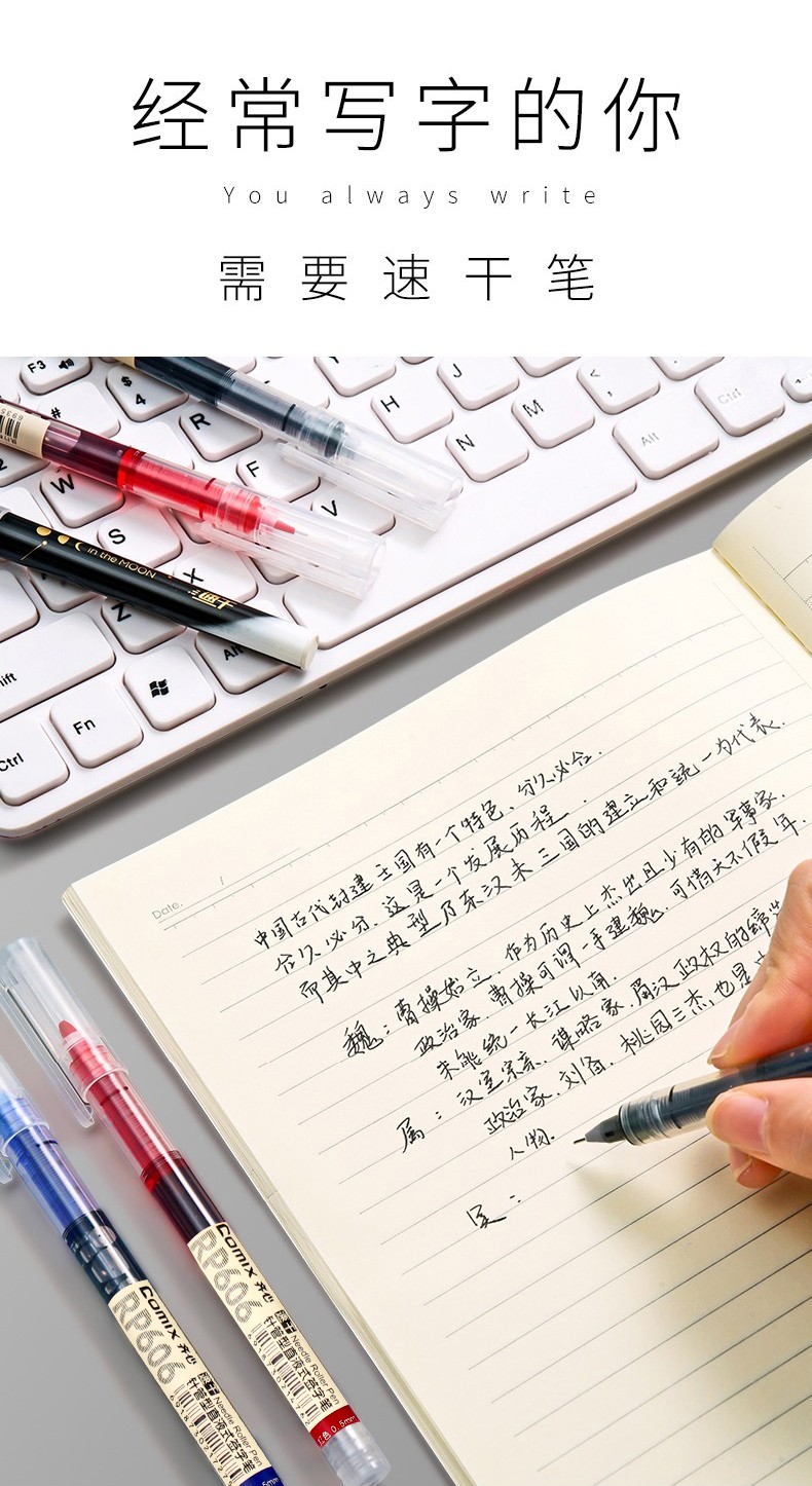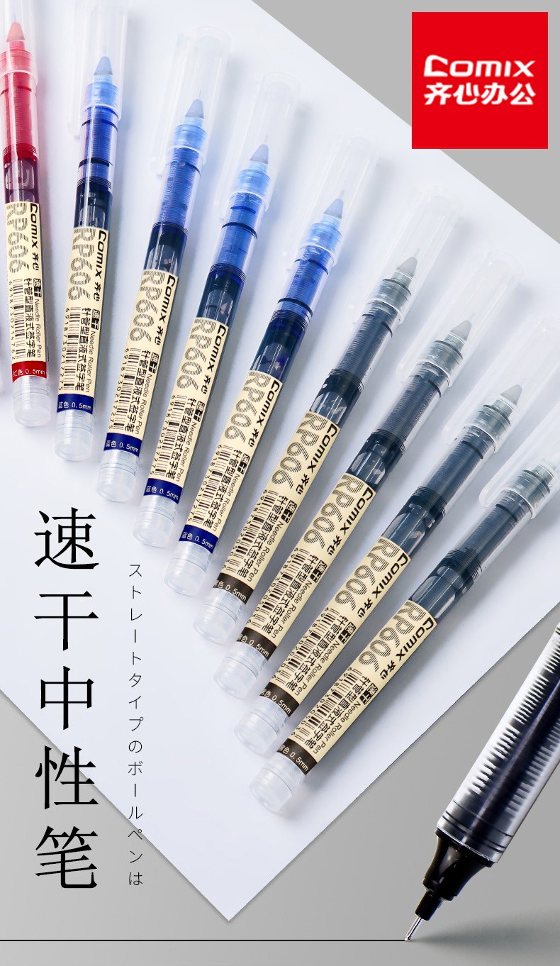 齊心RP606直液式全針管簽字筆黑0.5mm*10