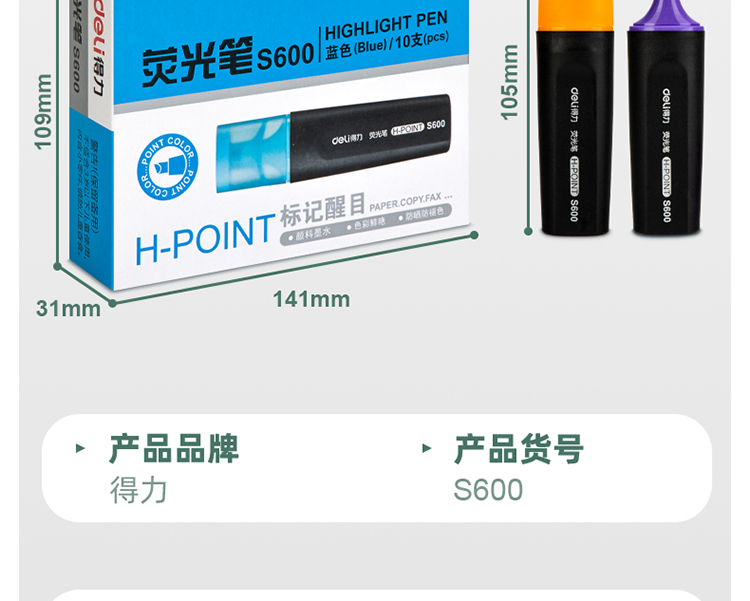 得力S600熒光筆粉*10