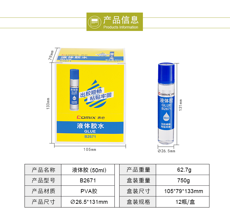 齊心B2671液體膠水50ml*12