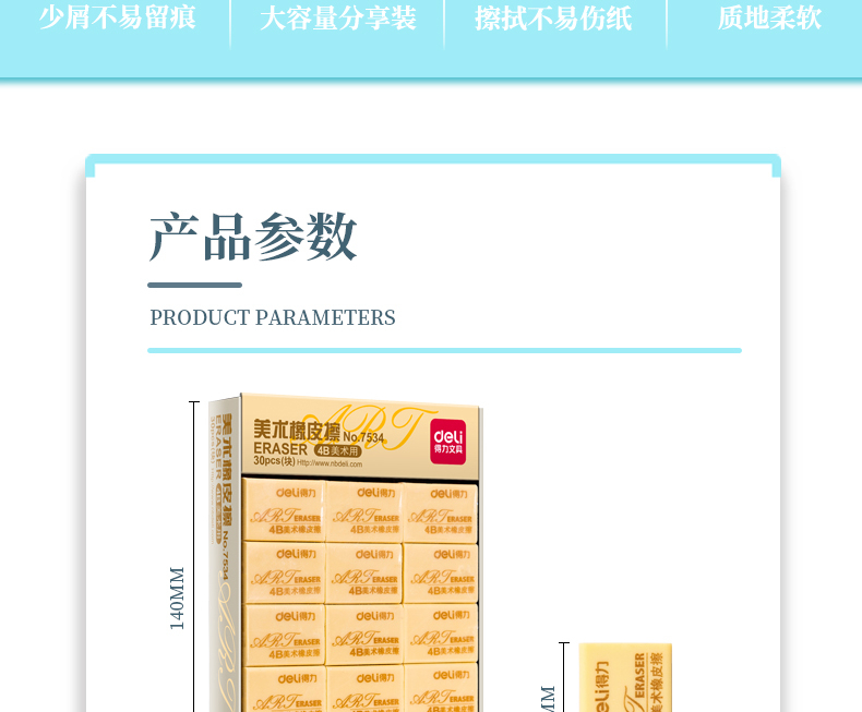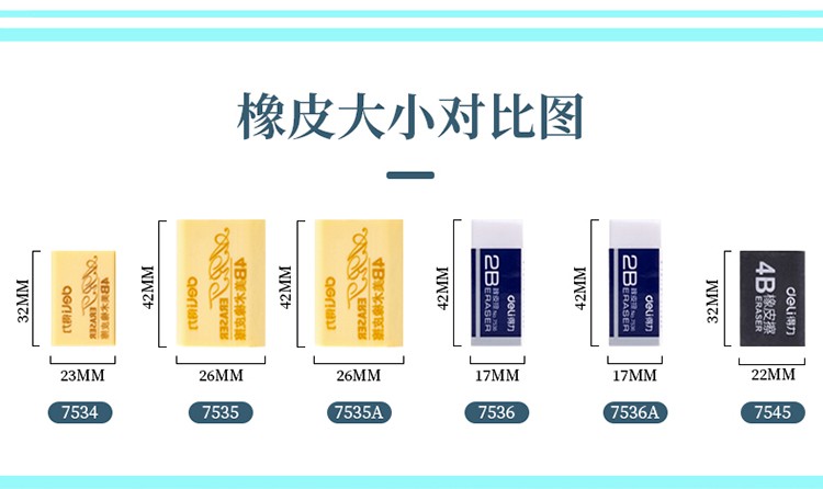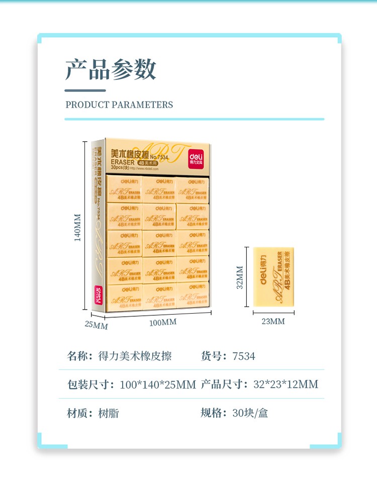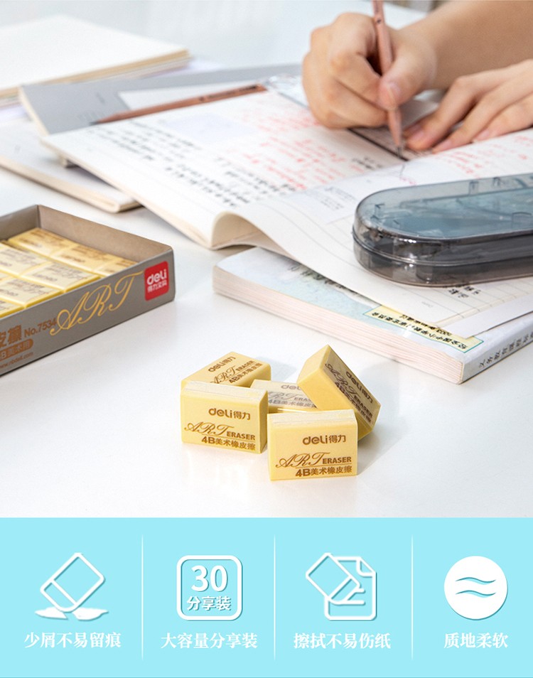 得力7534橡皮擦(混)*30塊/盒