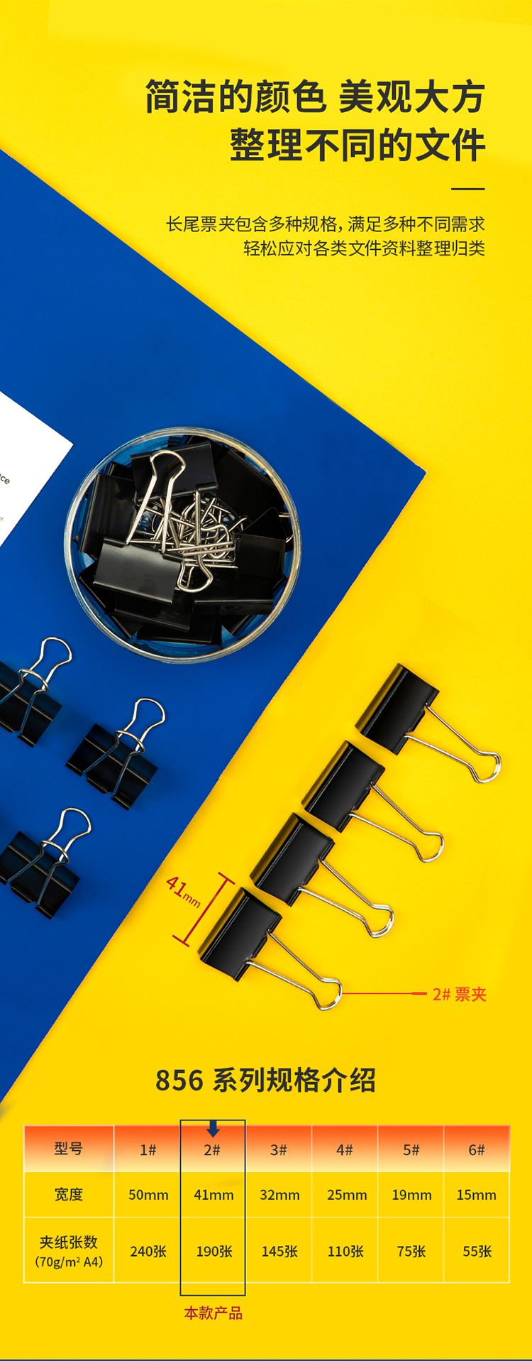 得力8562-2#黑色長尾票夾筒裝41mm*24只/筒