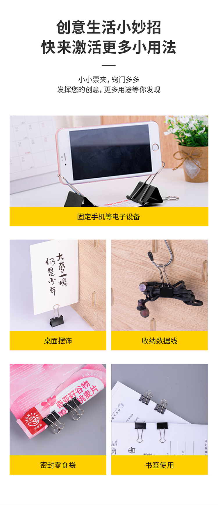 得力8565-5#黑色長尾票夾筒裝19mm*40只/筒