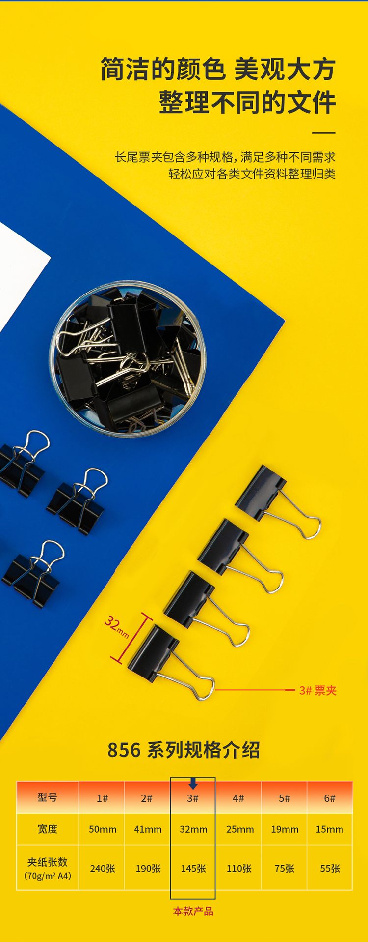 得力8563-3#黑色長(zhǎng)尾票夾筒裝32mm*24只/筒