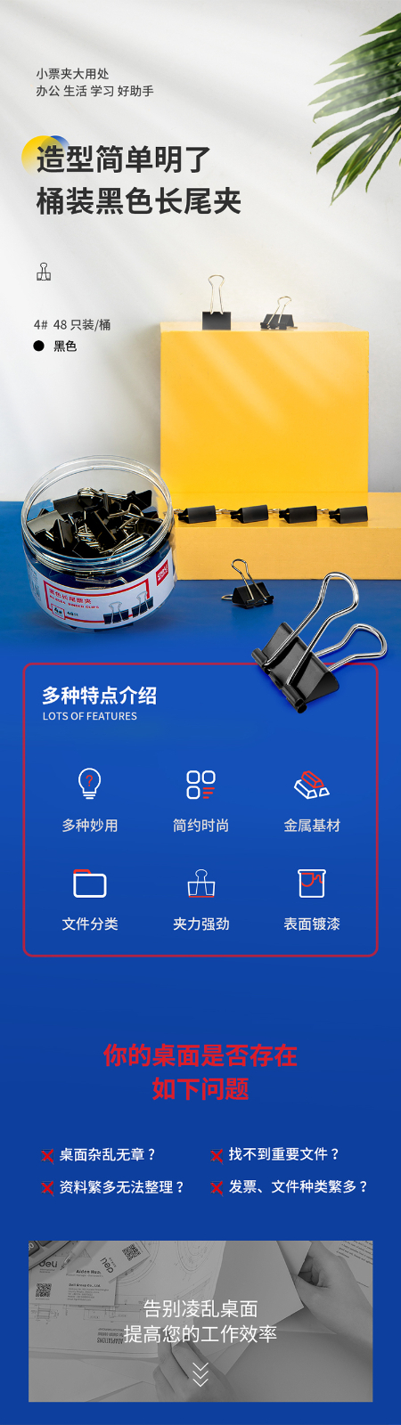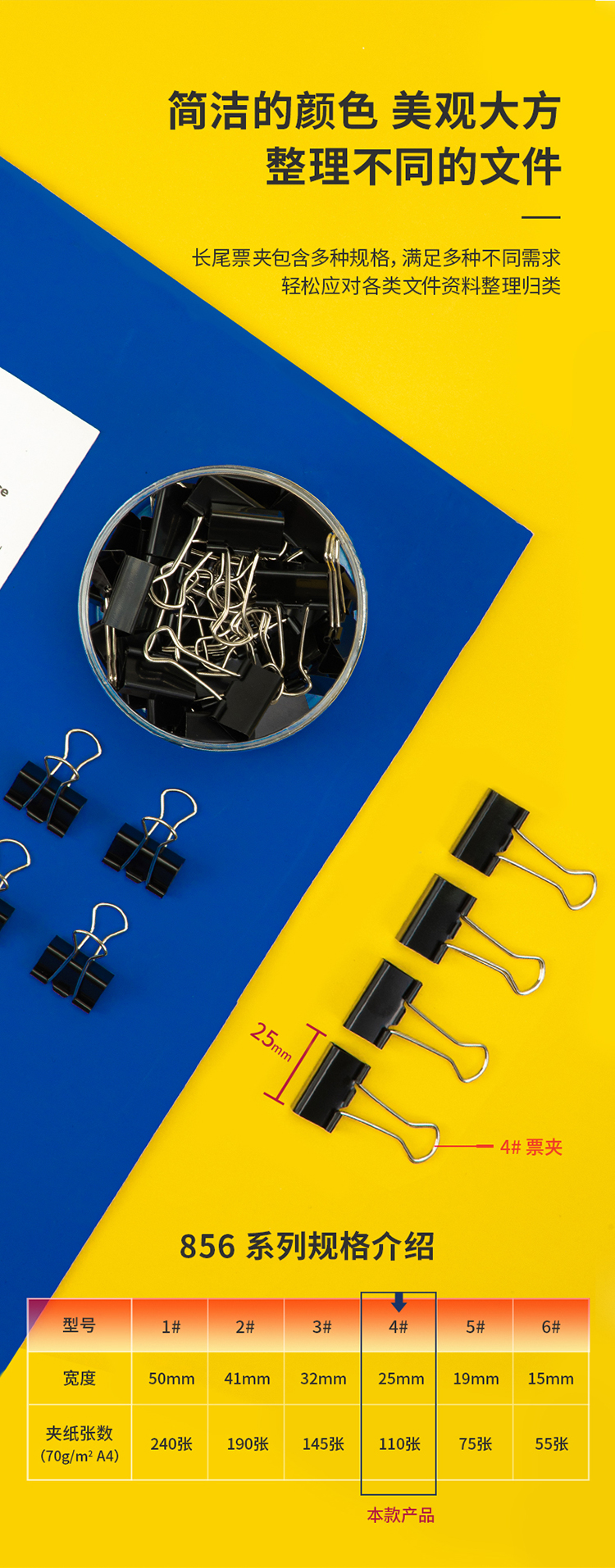 得力8564-4#黑色長(zhǎng)尾票夾筒裝25mm*48只/筒