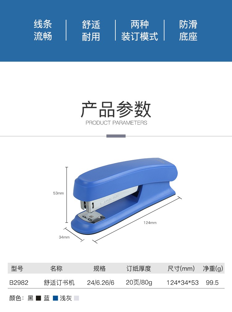 齊心B2982舒適防滑訂書機(jī)12# 20頁*12